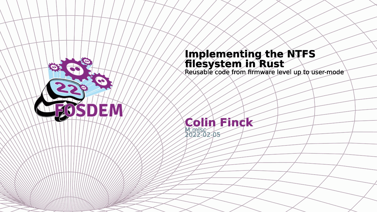 I had the honor of speaking about my recent NTFS Rust filesystem crate and the video is now online: